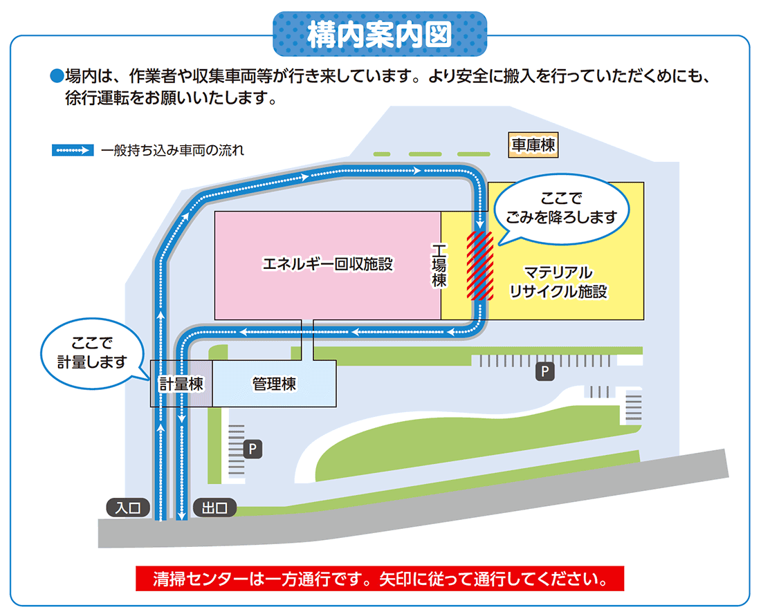 - 搬入されたごみは、原則持ち込んだ方ご自身で荷降ろしをお願いします。